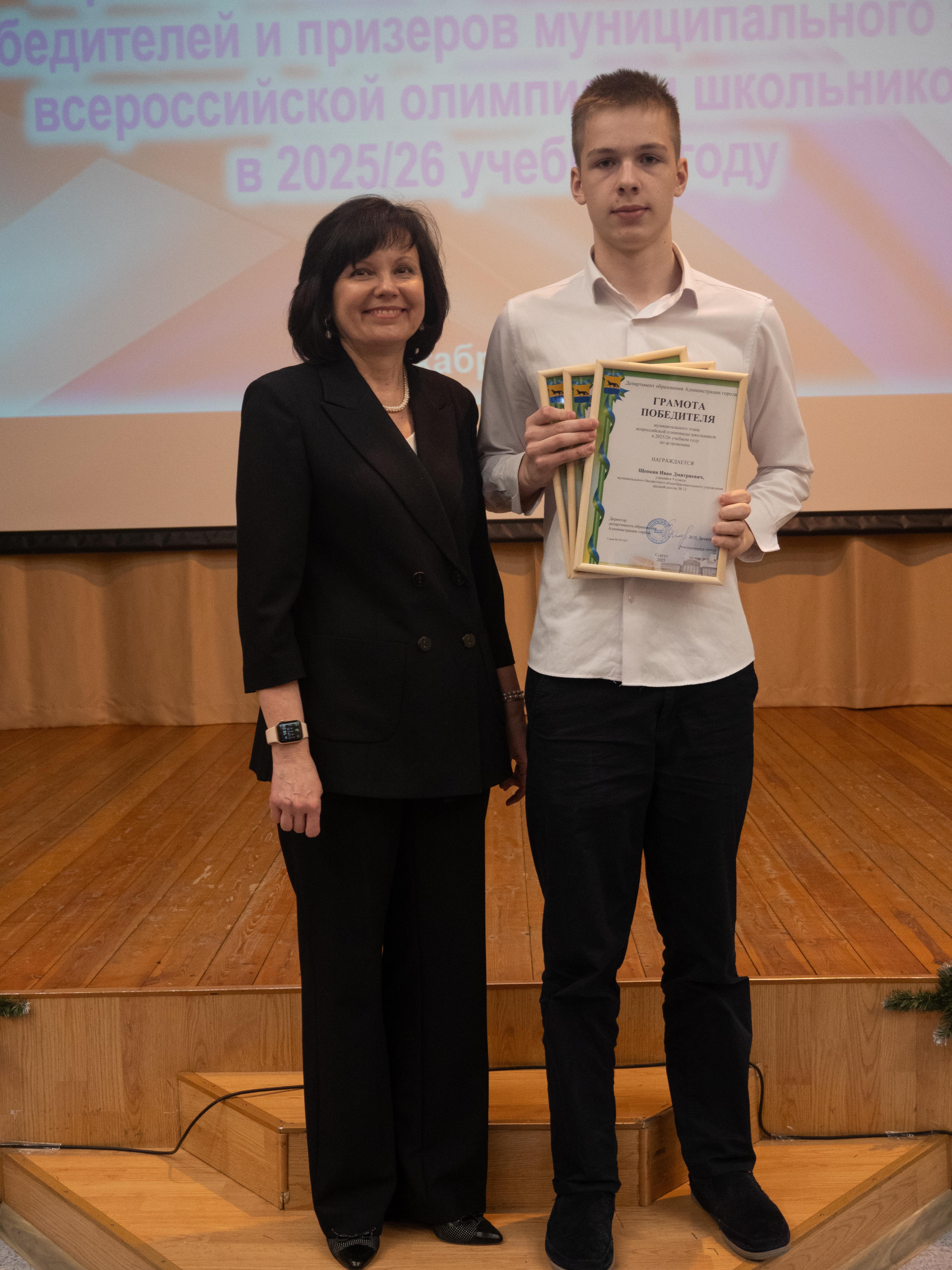 Торжественная церемония награждения победителей муниципального этапа всероссийской олимпиады школьников в 2025/2026 учебном году