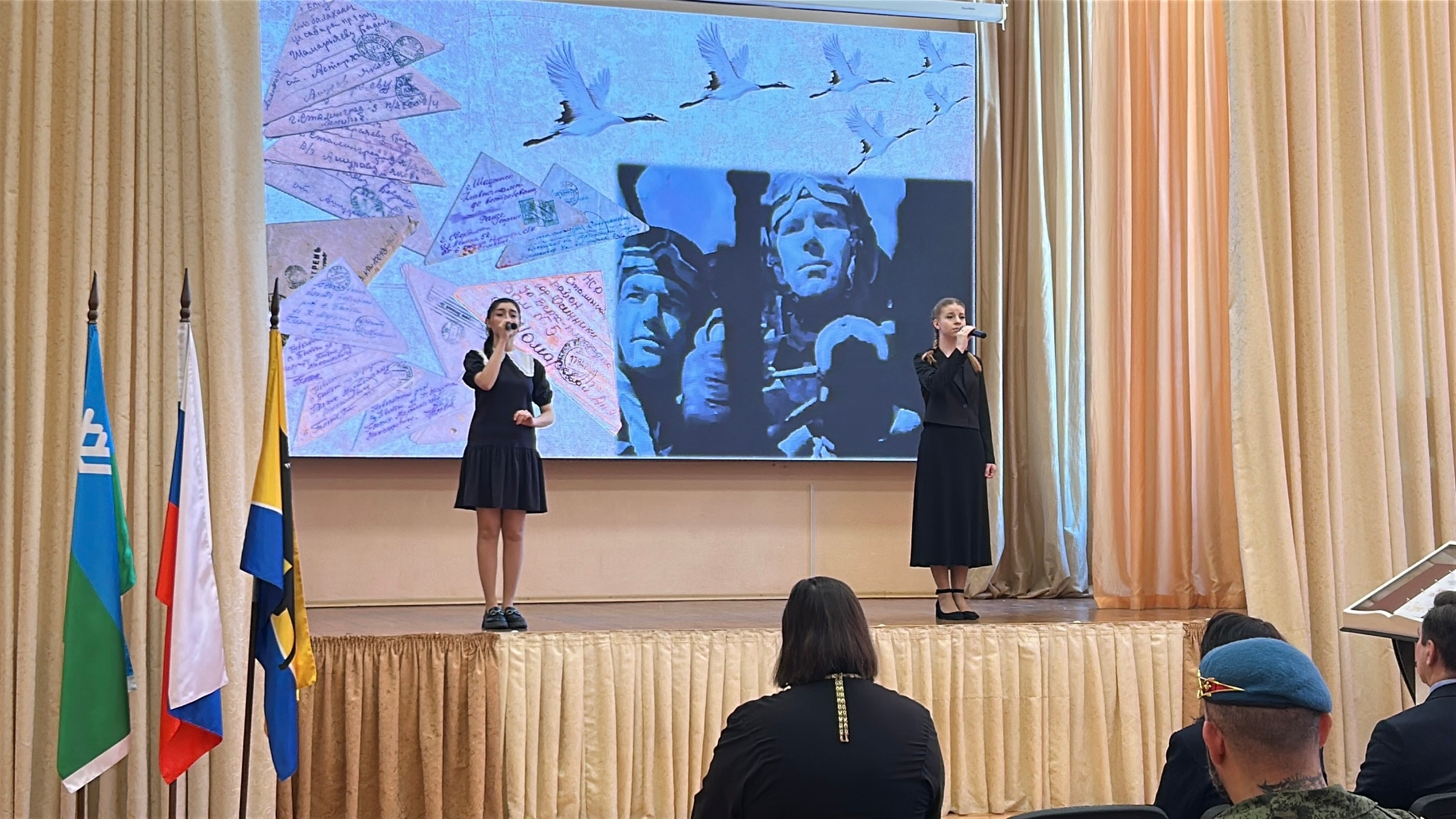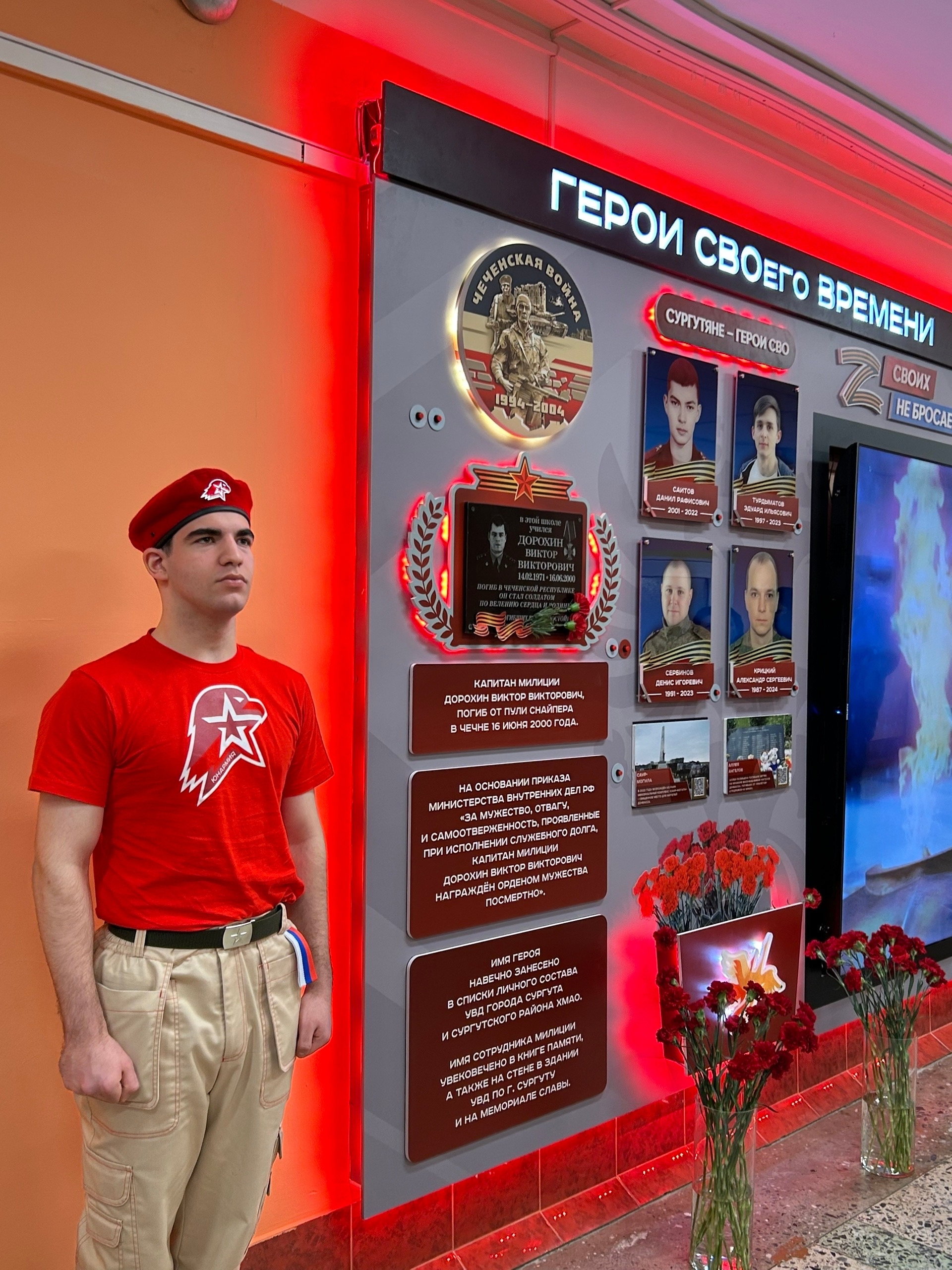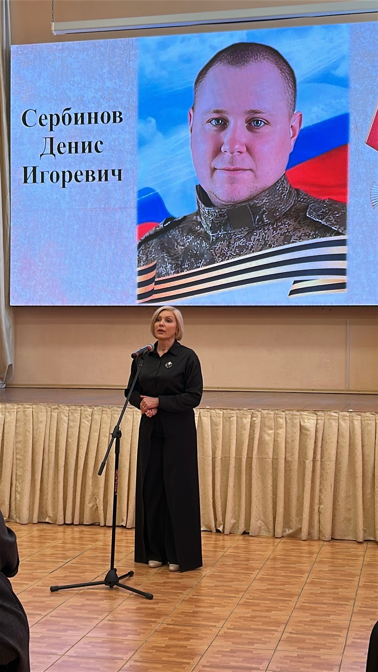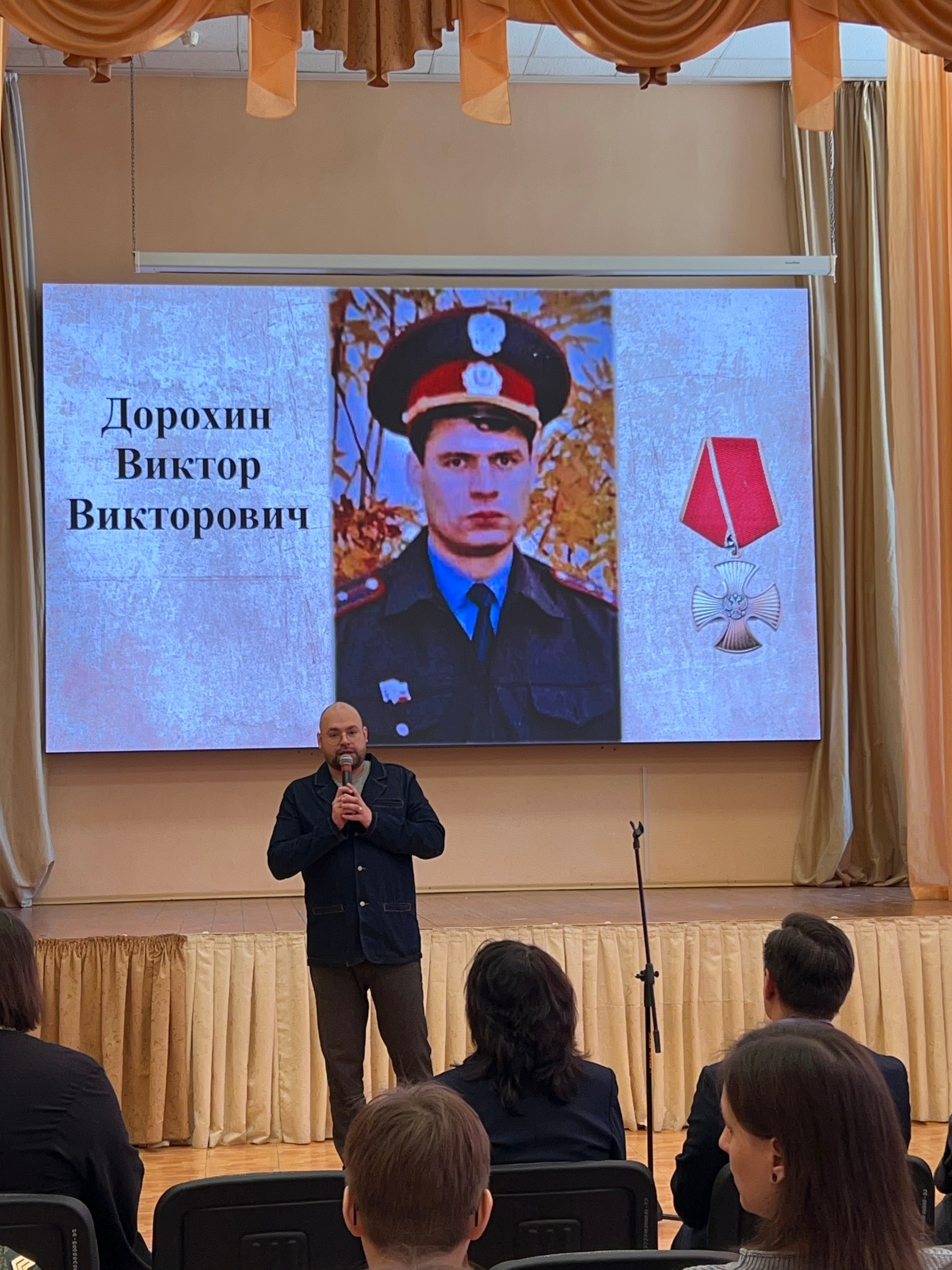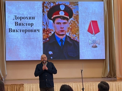 Роман Викторович Дорохин, сын Героя Виктора Дорохина; Инна Валерьевна Сербинова, мама Героя Дениса Сербинова; Мансифа Ханафиевна Саитова, мама Героя Данила Саитова; Ольга Владимировна Горбоконь, учитель Героя Эдуарда Турдыматова. Слова памяти прозвучали о подвиге Героя СВО - Александра Крицкого.