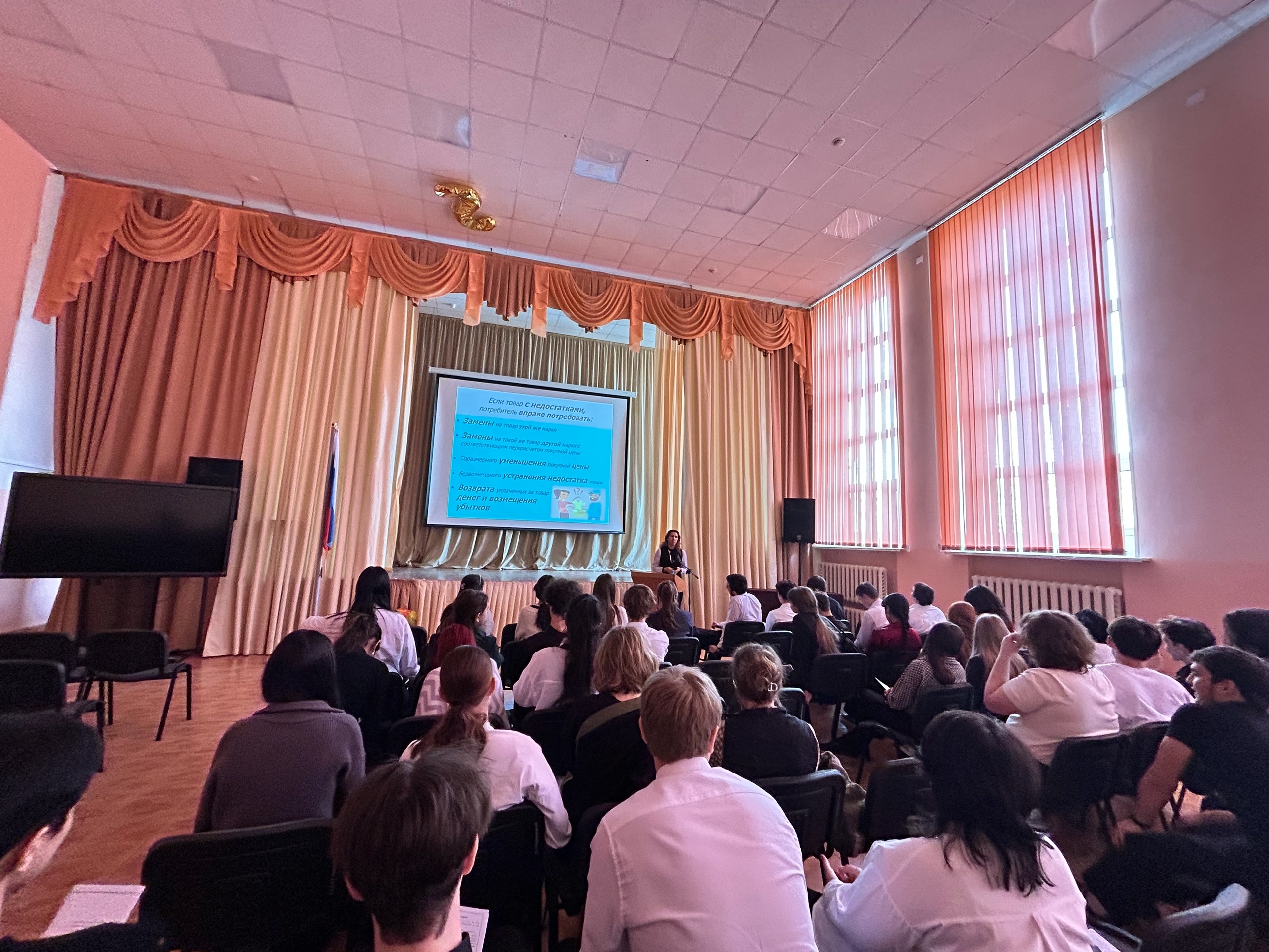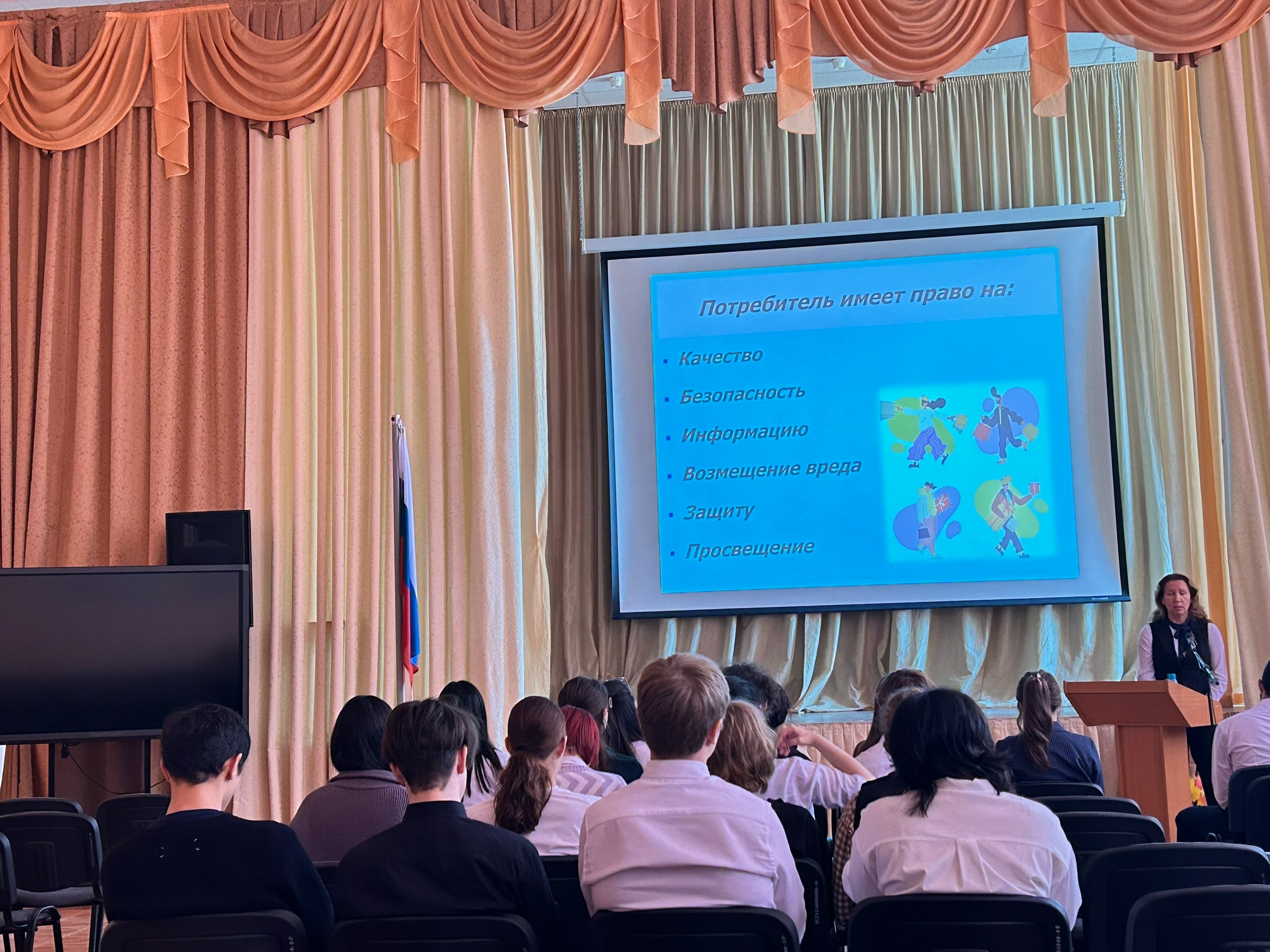 В рамках профориентации прошла встреча с представителем управления потребительского рынка и защиты прав потребителей. Среди учеников 11 классов была приглашена Тремасу Елена Юрьевна, главный специалист управления потребительского рынка и защиты прав потребителя администрации города.