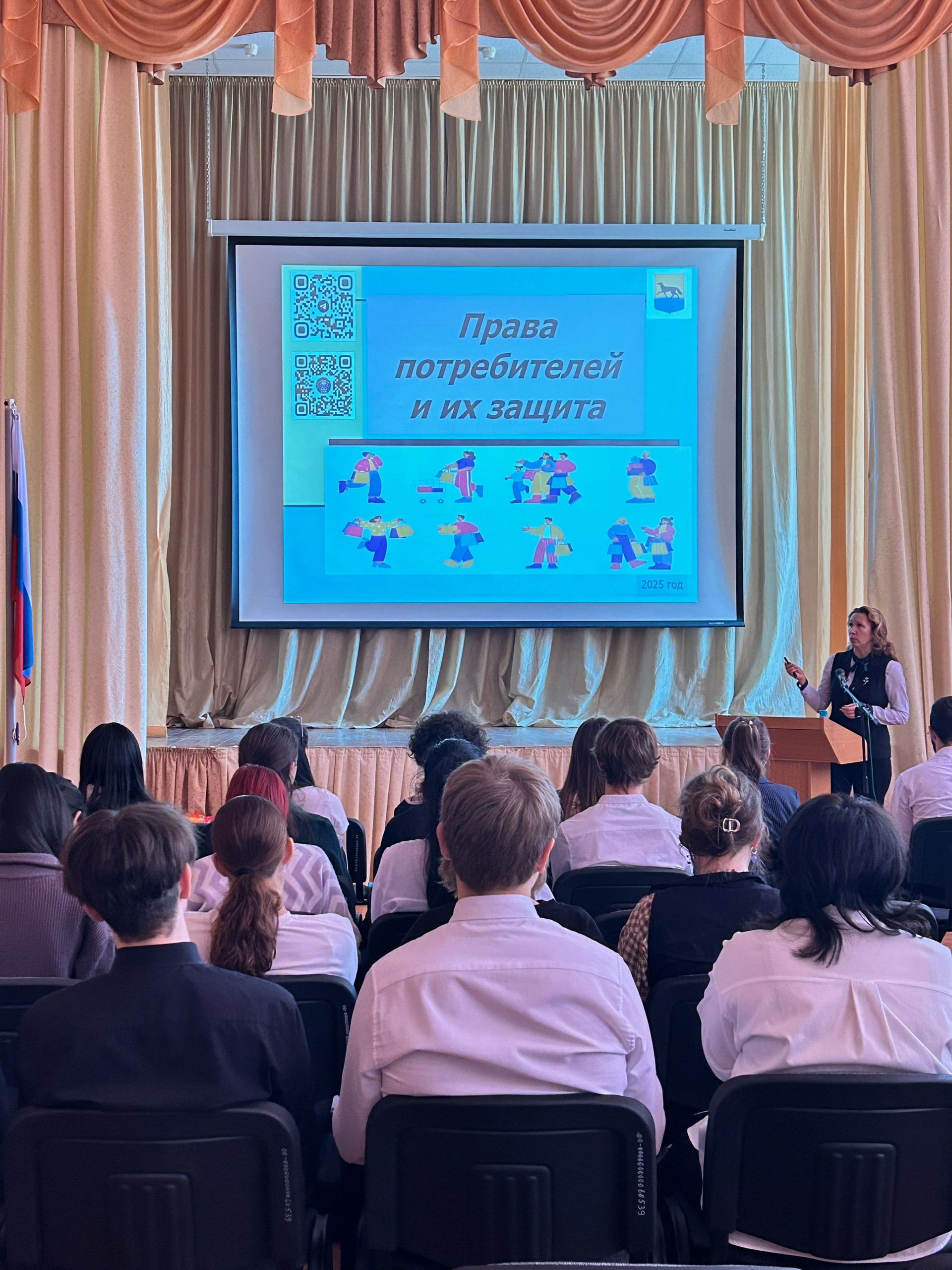Елена Юрьевна рассказала старшеклассникам о специфике работы управления, его задачах и функциях в сфере защиты прав потребителей. Подробно остановилась на основных законах и нормативных актах, регулирующих потребительский рынок, а также объяснила, как потребители могут защищать свои права в случае их нарушения.
