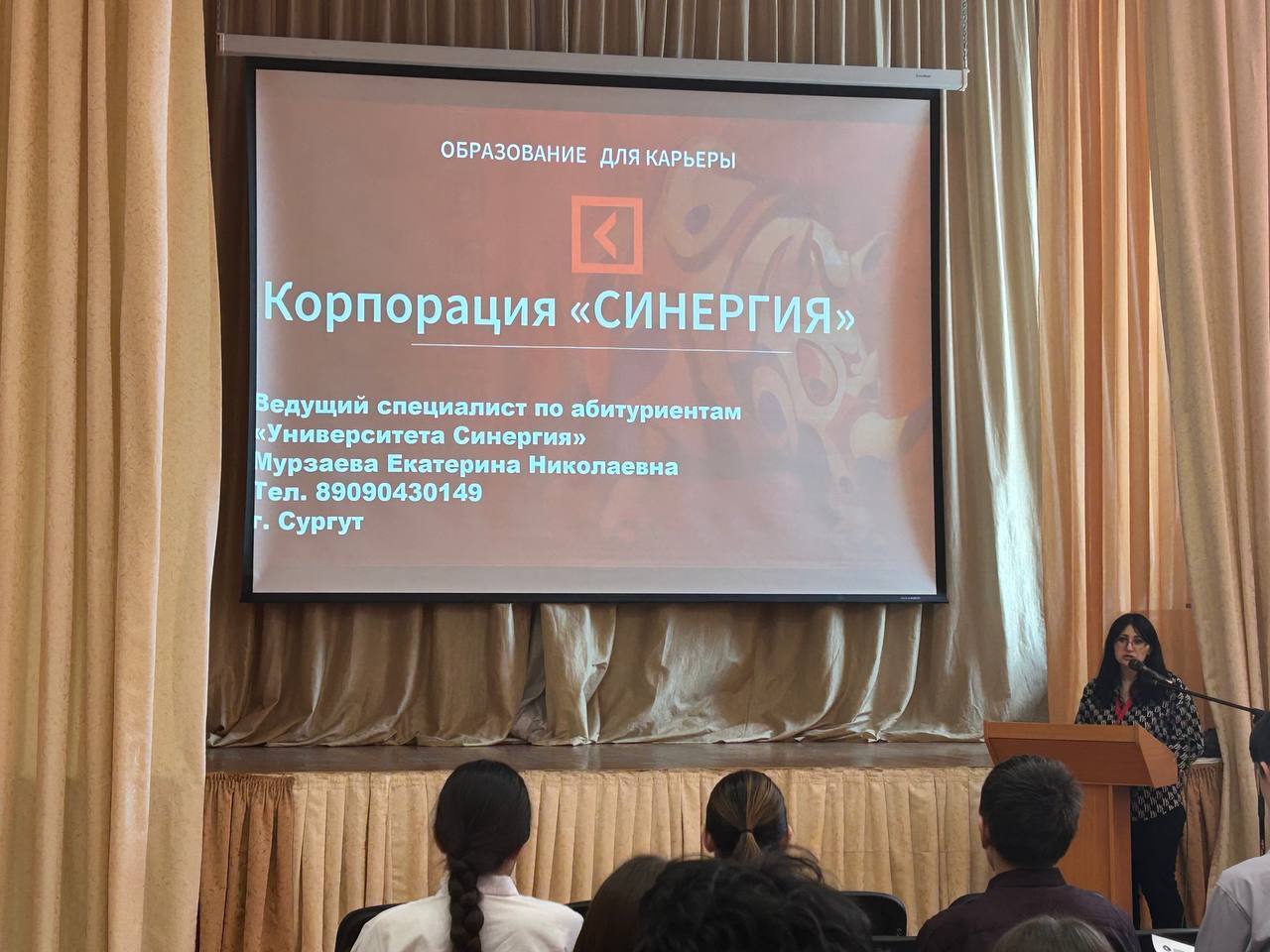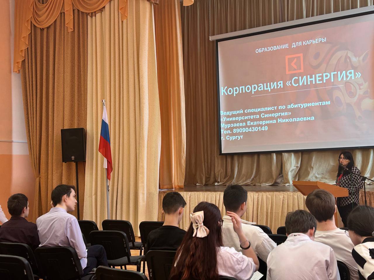 Актовый зал нашей школы превратился в площадку для важного события, ориентированного на будущее наших учеников. Состоялась встреча учащихся 9-10 классов с Мурзаевой Е.Н., ведущим специалистом по вопросам поступления в высшие учебные заведения. В центре внимания оказалась тема поступления в престижный университет СИНЕРГИЯ.